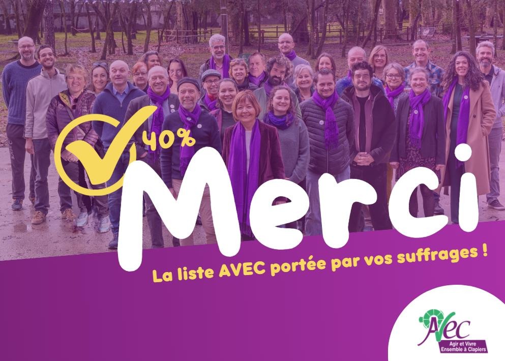 Vous êtes 1263, soit 40 % des votants clapiérois, à avoir soutenu notre programme et plébiscité notre méthode. Nous ne l’oublierons pas.